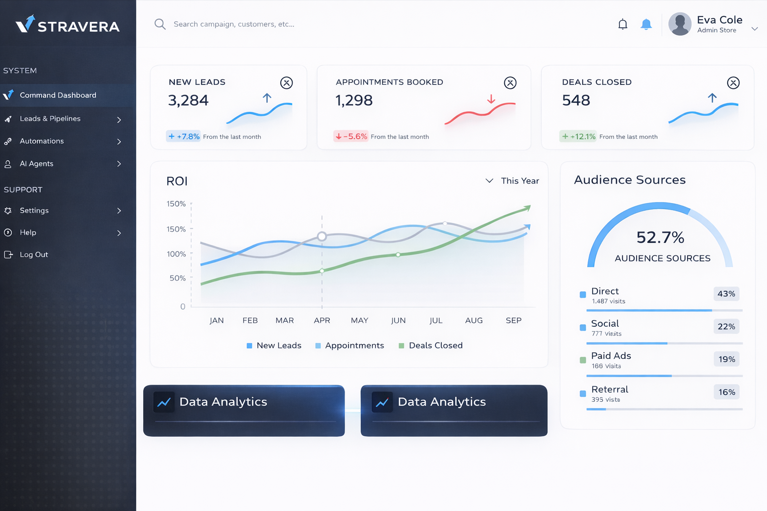 Stravera gives you real-time visibility into leads, conversations, bookings, and performance — so you can make confident decisions without digging through tools or spreadsheets.